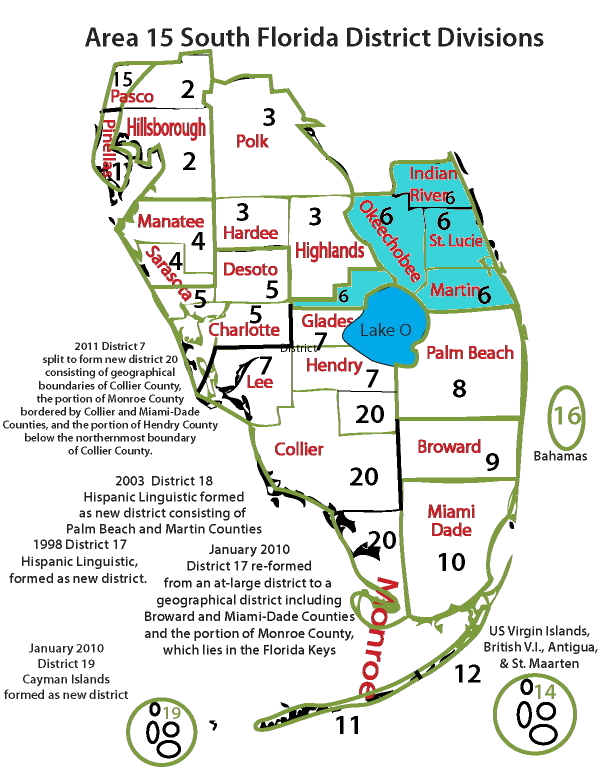 District 6 serves Indian River, St. Lucie, Martin, Okeechobee and Glades counties, in South Florida Area 15.