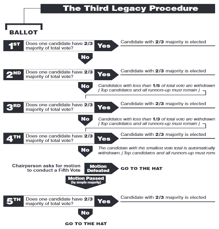 - If no candidate has received two-third of the votes cast, at least four ballots and up to five ballots are held in attempt to achieve a two-thirds majority.